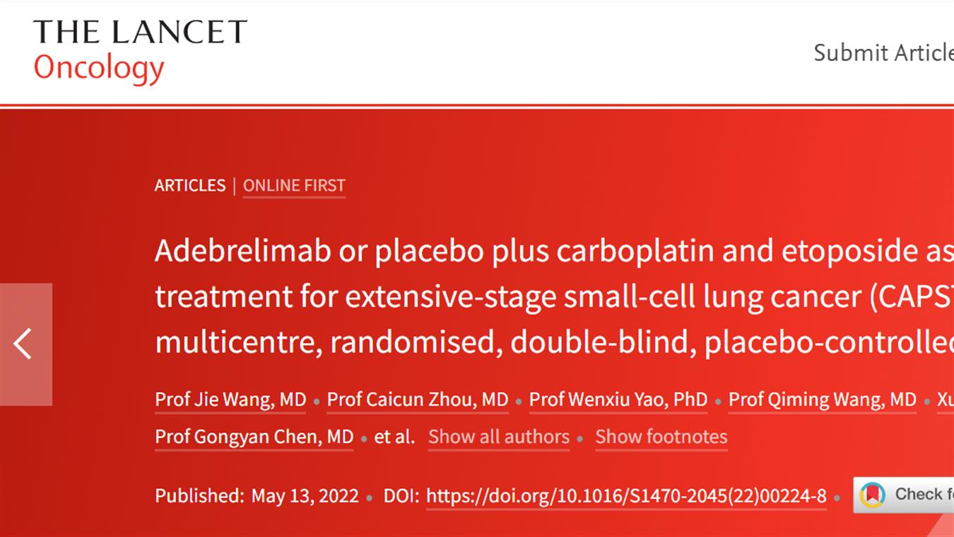彩神vll卡瑞利珠单抗联合阿帕替尼最新研究成果荣登《柳叶刀·肿瘤》
